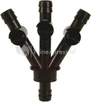 Polypropyleen 3-weg kraan met 19 mm aansluitingen. Voor bijvoorbeeld het verbinden van vier stukken vijverslang.